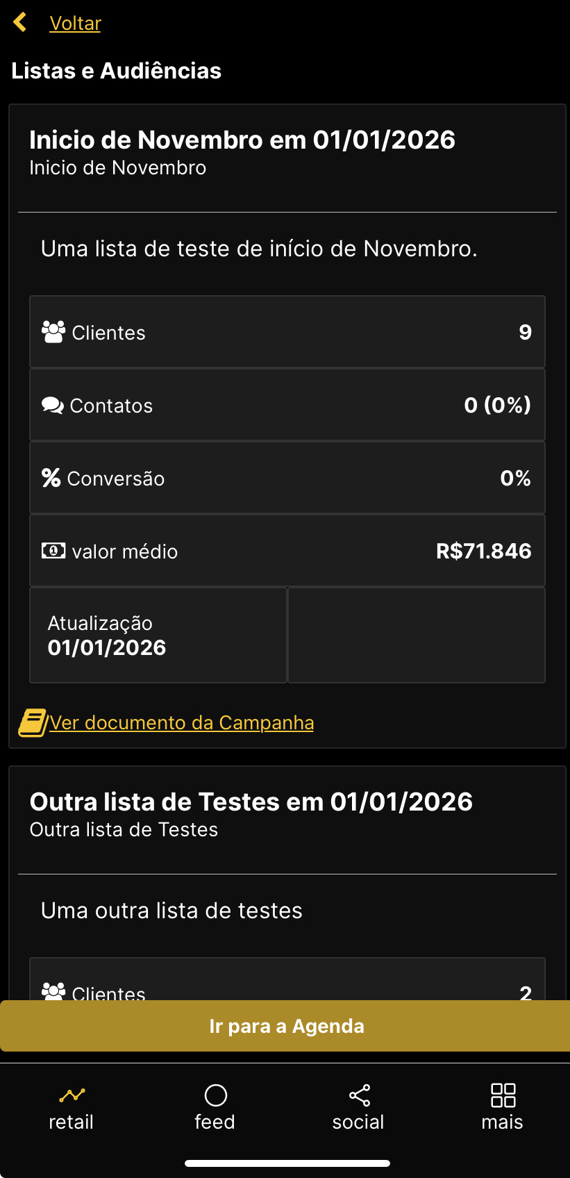 Para iniciar efetivamente os contatos com os clientes, toque no botão “Ir para a Agenda”.